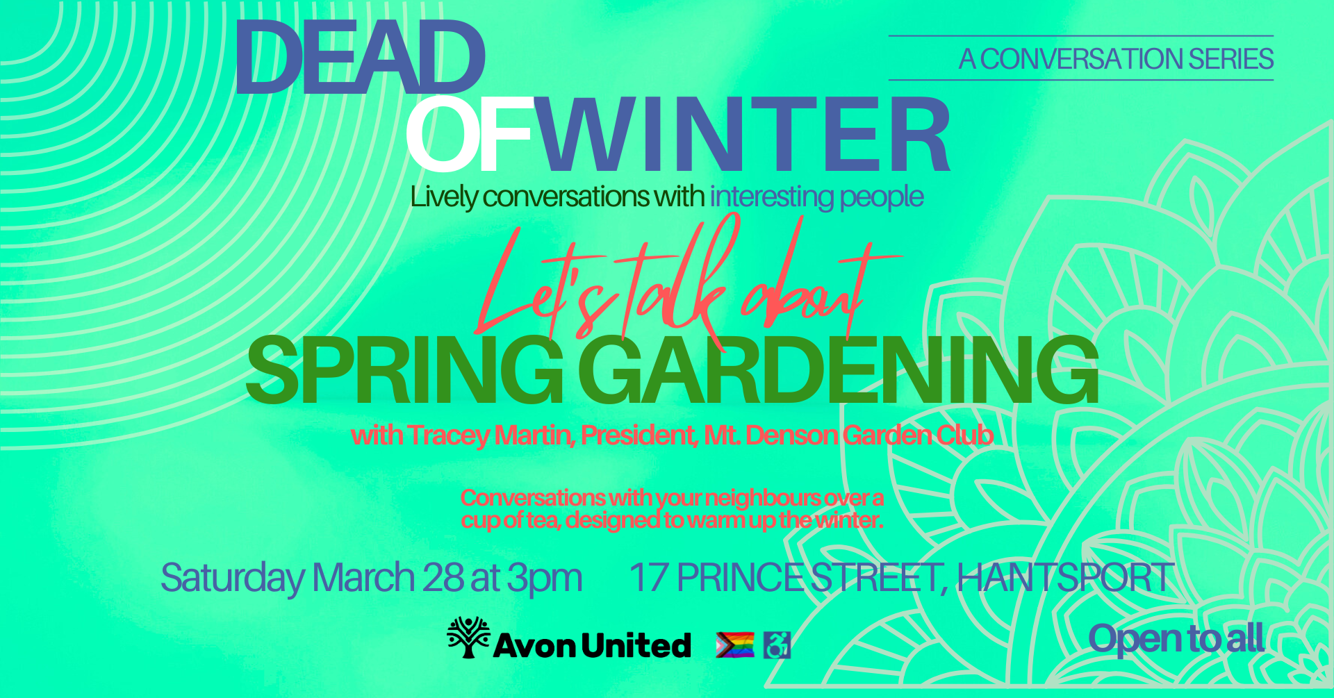 Let’s Talk About Spring Gardening Ready to get your hands back in the dirt? Join us for an afternoon focused on all things green and growing. We are thrilled to welcome Tracey Martin, President of the Mt. Denson Garden Club, to lead the conversation and share expert insights as we prepare for the upcoming season.